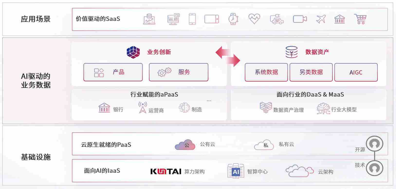数字时代,,围绕企业数字化转型的关键要素,,,,z6com尊龙数码开创性的提出数云融合战略和技术体系框架,,着力在云原生、、数字原生、、、、AI原生和信创产业上架构产品和服务能力,,为处在不同数字化转型阶段的快消零售、、汽车、、金融、、医疗、、、政企、、、教育、、运营商等行业客户提供泛在的敏捷IT能力和融合的数据驱动能力,,构建跨界融合创新的数字业务场景和新业务模式,,,,助力企业级客户建立面向未来的核心能力和竞争优势,,,,全面推动社会的数字化、、、智能化转型升级。。。